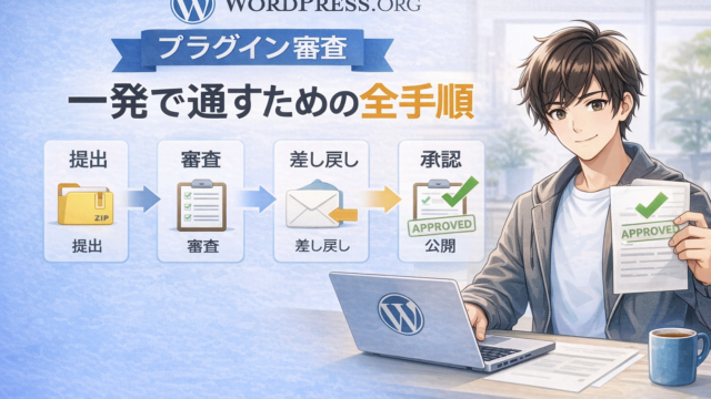 WordPress WordPress.orgのプラグイン審査に一発で通すための全手順|提出準備から差し戻し対応、SVN公開まで WordPress.orgプラグイン審査の提出準備から差し戻し対応、SVN公開までを一本の記事で解説。Plugin Checkの使い方、エスケープ・サニタイズ・Nonce検証の修正例、readme.txtの書き方など実体験ベースで紹介。 2026.01.01 WordPress